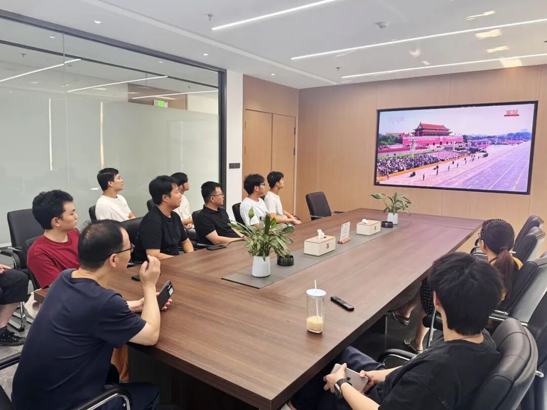 新大樓各層會議室現(xiàn)場氣氛莊重,全體黨員及職工認真聆聽習(xí)近平主席重要講話。當閱兵儀式開始時,大家不時為受閱部隊的雄壯陣容和先進裝備贊嘆鼓掌,由衷為祖國日益強大的綜合國力與國防力量感到自豪。觀看結(jié)束后,黨員們深受震撼、心潮澎湃,一致認為這場閱兵不僅展示了國威軍威,更彰顯了中華民族百折不撓、團結(jié)奮進的偉大精神。