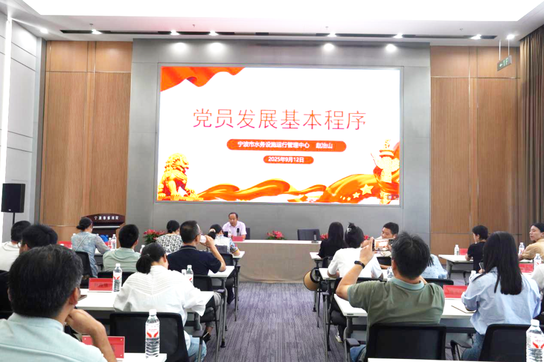 2025年9月12日上午,中共寧波市水利局直屬機(jī)關(guān)委員會在我院一樓報告廳成功舉辦黨務(wù)干部培訓(xùn)。本次培訓(xùn)以“銘記抗戰(zhàn)歷史 傳承紅色基因 賦能水利發(fā)展”為主題,旨在進(jìn)一步提升全局系統(tǒng)黨務(wù)干部的政治素養(yǎng)和業(yè)務(wù)能力,夯實基層黨組織建設(shè)基礎(chǔ)。寧波市水利局系統(tǒng)各基層黨組織組織委員近三十人參加了培訓(xùn),我院相關(guān)黨務(wù)干部一同參與。