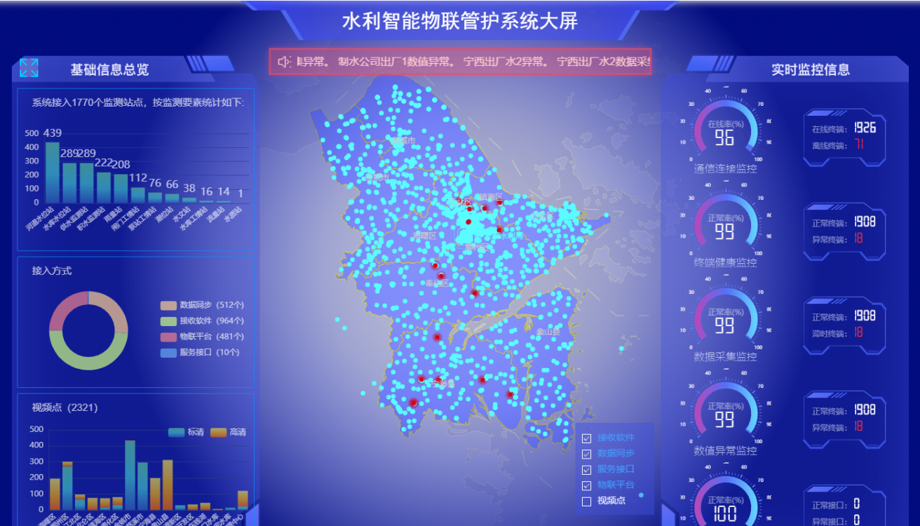 智慧水利物聯(lián)管護(hù)平臺(tái),對(duì)水利各部門、各廠商、各類型監(jiān)測(cè)設(shè)備的,健康狀態(tài)與數(shù)據(jù)傳輸?shù)冗M(jìn)行統(tǒng)一管理,實(shí)現(xiàn)水利要素實(shí)時(shí)“感知-互聯(lián)”,強(qiáng)化水利物聯(lián)感知監(jiān)管,為智慧水利建設(shè)提供基礎(chǔ)支撐。