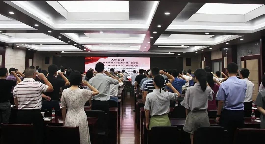 隨著雄壯激昂的《義勇軍進行曲》歌聲響起,市水利局迎接建黨99周年紀念大會正式拉開帷幕。“我志愿加入中國共產黨……” 全體黨員昂首挺胸,高舉右手,一起重溫入黨的錚錚誓言。會議現場,宣誓儀式氣氛莊嚴。