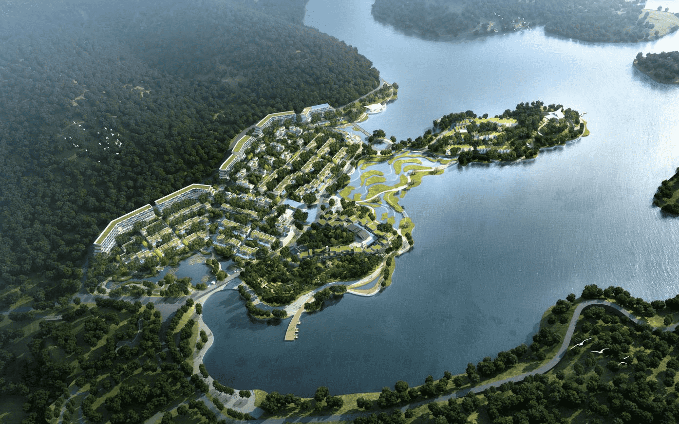 鎮(zhèn)海十字路地塊項目位于寧波市鎮(zhèn)海區(qū)九龍湖鎮(zhèn),十字路水庫西北側、九龍山東南側(原十字路村的位置)。本項目建成可延續(xù)水庫兩岸湖面,打造九龍湖生態(tài)活力景觀帶,聯(lián)通九龍湖片區(qū)重點活力空間,帶動區(qū)域經(jīng)濟發(fā)展;通過酒店及配套設施打造多功能、多體驗與多生態(tài)并存的濱水旅居綜合體,助力九龍湖區(qū)域升級;項目建設充分尊重原有的地貌環(huán)境,打造與自然融為一體、生態(tài)豐富多樣的湖景活力社區(qū),提升九龍湖風景區(qū)在寧波的影響力。