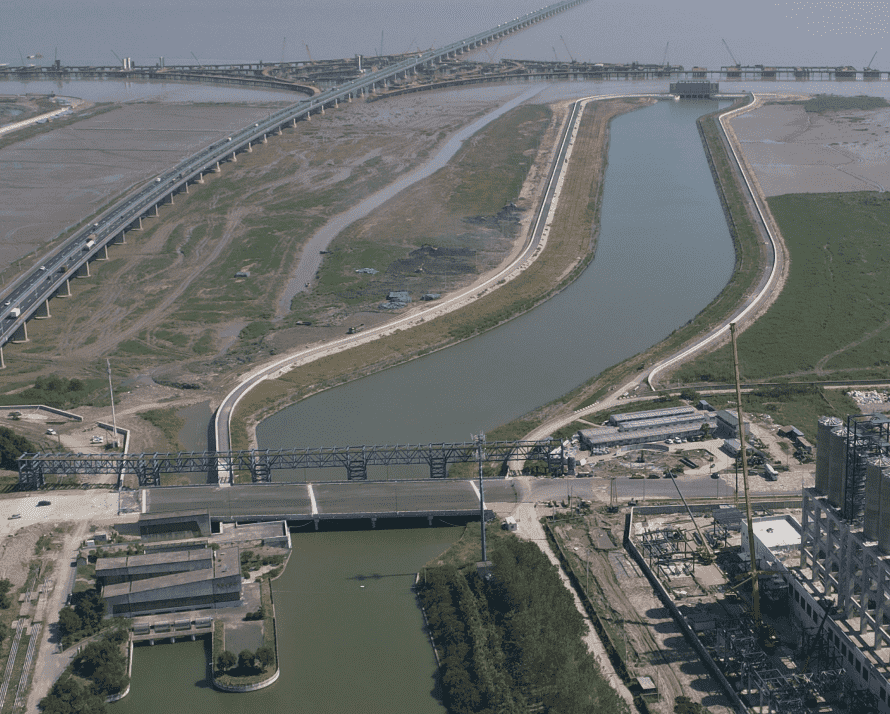 本工程位于寧波市鎮(zhèn)海區(qū)東部,新泓口河下游,現(xiàn)新泓口水閘外海側(cè),金塘大橋橋下。結(jié)合排澇閘外移及兩側(cè)防護(hù)堤的建設(shè),將有利于該海域加快灘涂淤漲,以部分恢復(fù)錢塘江河口南岸的淺海潮灘濕地;隨著灘涂淤漲有利于該海域增加海洋生物總量,有利于生物多樣性的恢復(fù)及生態(tài)環(huán)境的改善。