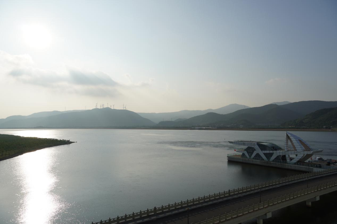 梅山灣外,銀浪拍岸;梅山灣內,碧波含翠。首先,研學隊伍到達梅山灣建設管理中心,跟隨工作人員登樓參觀,眺望南堤樞紐及附近設施,聆聽工程總體建設情況,并觀看宣傳片,了解該工程的誕生始末。