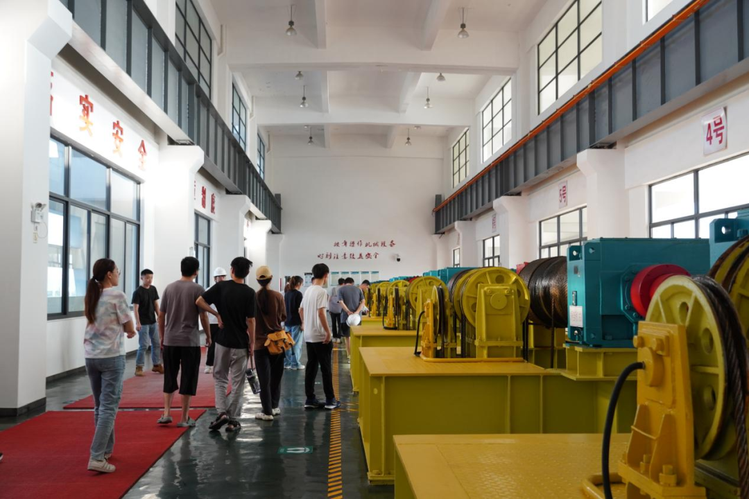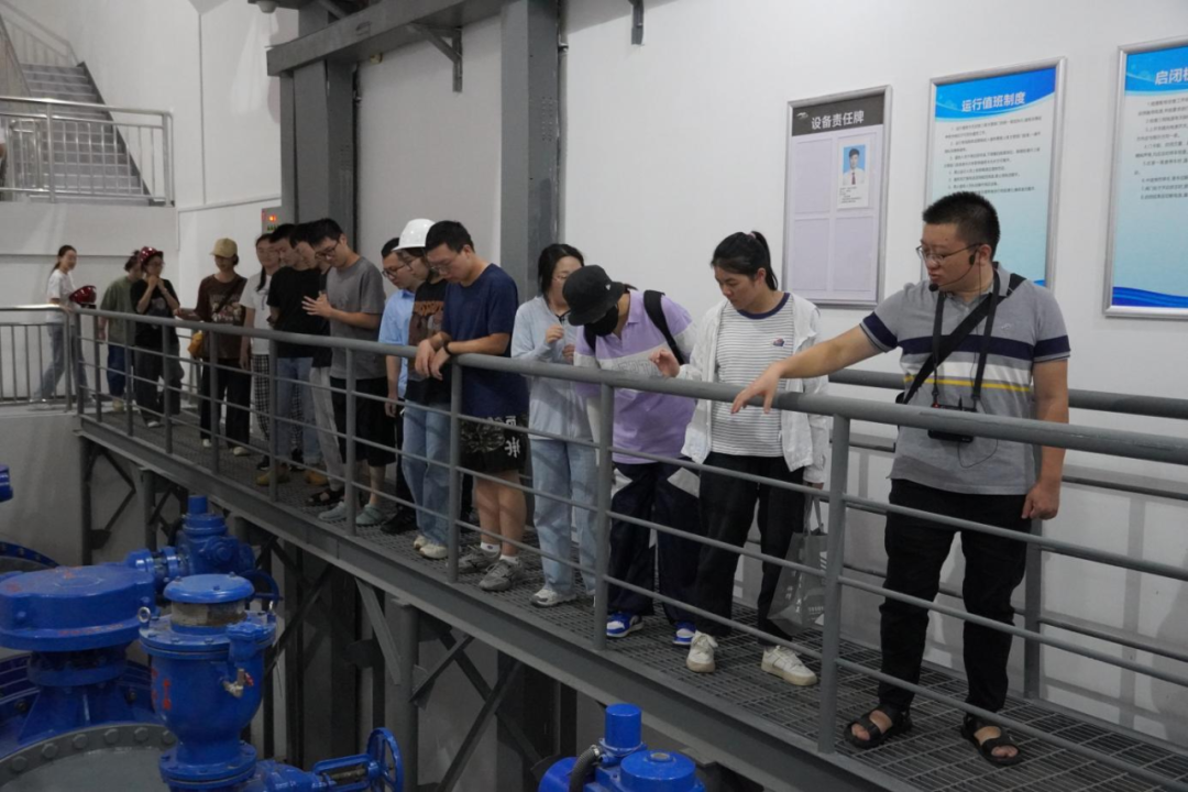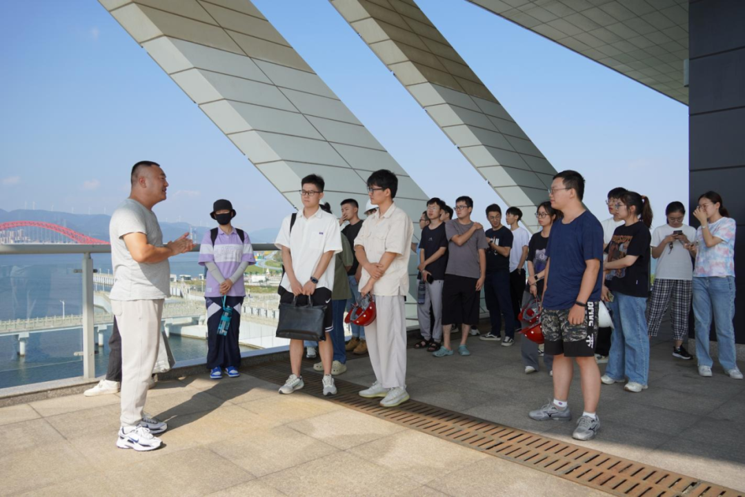 最后,研學隊伍來到北堤樞紐參觀。該工程榮獲中國建筑行業(yè)工程質量的最高榮譽獎——2020-2021年度第一批中國建設工程魯班獎。胡經理帶領研學隊伍依次進入啟閉機房、觀景臺、控制室等處,現場講解工程設計思路、建造工藝和管理要點。