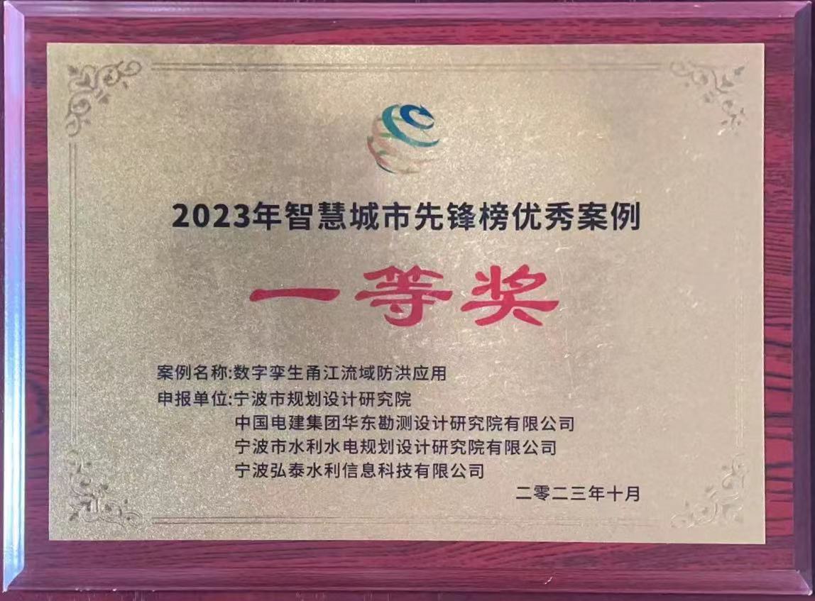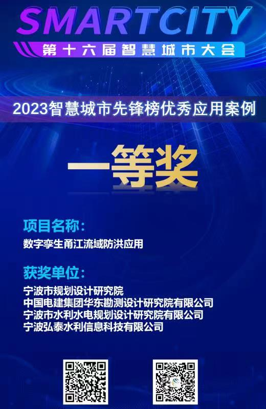 近日,我院與寧波市規(guī)劃設(shè)計(jì)研究院、華東勘測(cè)設(shè)計(jì)研究院有限公司、寧波弘泰水利信息科技有限公司共同承擔(dān)的“數(shù)字孿生甬江流域防洪應(yīng)用”項(xiàng)目作為寧波智慧城市創(chuàng)新應(yīng)用成果,精彩亮相“第十六屆中國智慧城市大會(huì)”,并榮獲2023智慧城市先鋒榜優(yōu)秀應(yīng)用案例一等獎(jiǎng),同時(shí)入選《中國智慧城市優(yōu)秀應(yīng)用案例集(2023)》,已由中國電力出版社出版發(fā)行。