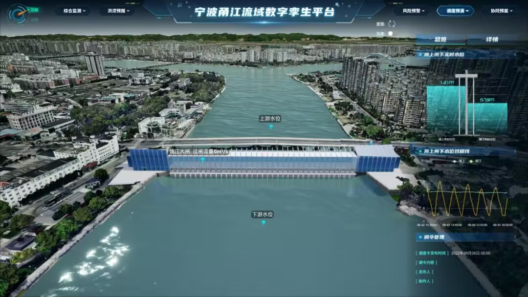 在防御2022年第12號(hào)“梅花”臺(tái)風(fēng)期間,數(shù)字孿生甬江流域防洪應(yīng)用提前精準(zhǔn)預(yù)判了余姚站等多個(gè)站點(diǎn)水位,據(jù)此制定了科學(xué)有效的調(diào)度方案,全力保障余姚城區(qū)和姚江、奉化江干流堤防安全,為成功抵御甬江流域超標(biāo)準(zhǔn)大洪水提供了強(qiáng)有力的技術(shù)支撐。