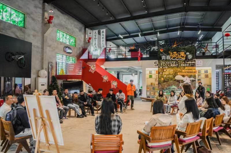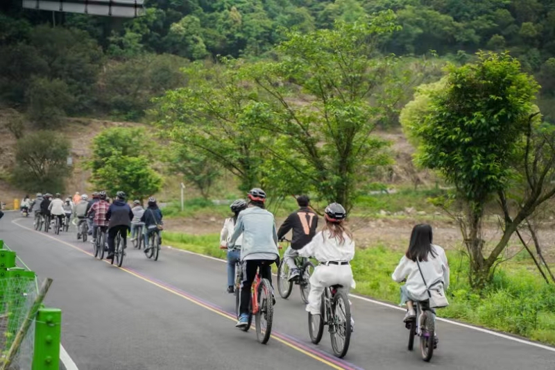 騎行環(huán)節(jié)中,小伙伴們?cè)诰G水青山間放松身心,自由交流,開啟了一場(chǎng)輕松愉悅的青春之約?;顒?dòng)尾聲,小伙伴們?cè)谖麽畮旌嫌傲裟?,互相添加?lián)系方式,更進(jìn)一步交流了想法、拓寬了社交圈。