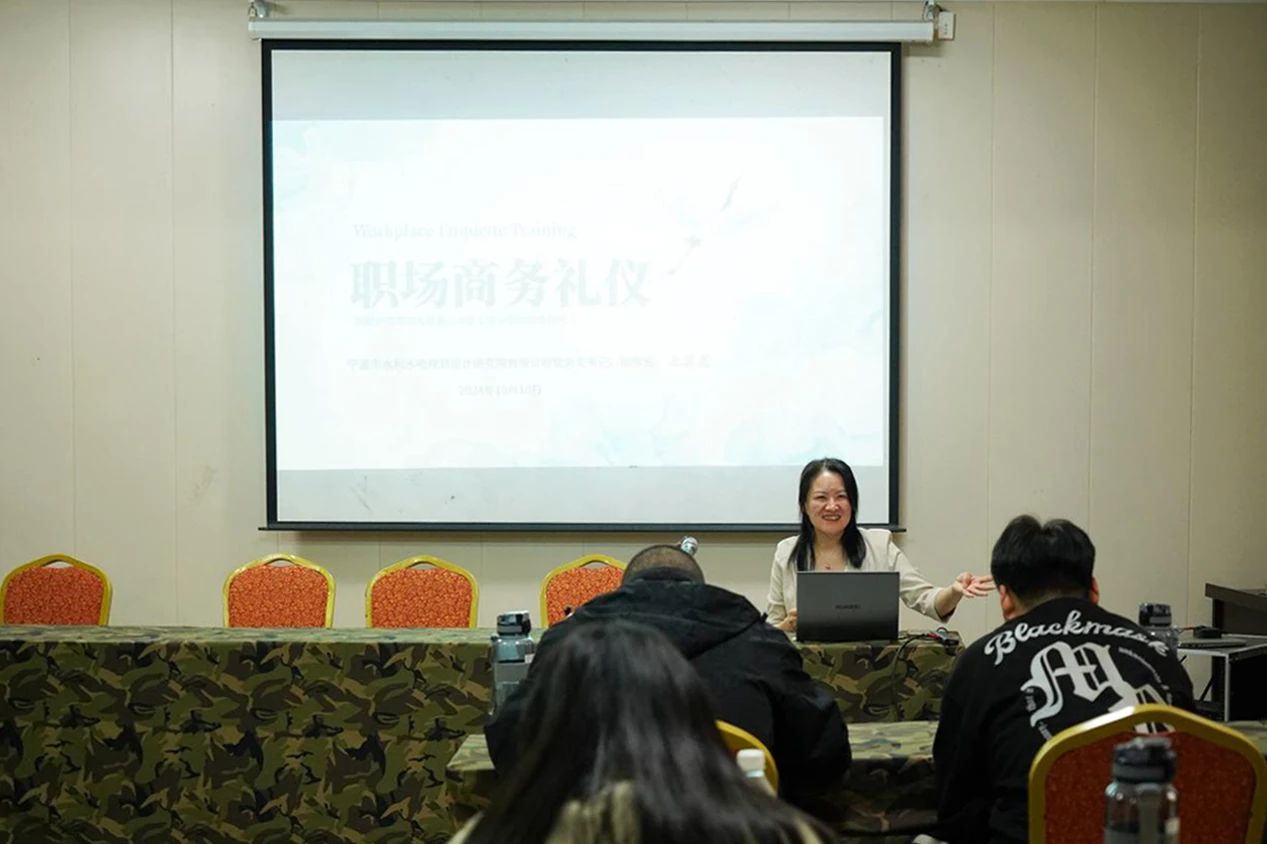 業(yè)務(wù)培訓設(shè)有多個專題講座,分別由副院長王洪霞及各部門分院負責人主講。內(nèi)容涵蓋職場商務(wù)禮儀、行政辦公知識、規(guī)章制度宣貫、保密專題培訓及規(guī)劃咨詢、工程設(shè)計、勘察檢測、建設(shè)管理、智慧水利等五大業(yè)務(wù)內(nèi)容。講師們聚焦重點,講解難點,分享經(jīng)驗,幫助新員工盡快完成從校園到職場的銜接,了解崗位需求、獲取職場知識、積極適應(yīng)新環(huán)境。新員工認真聽講,積極提問,收獲良多。